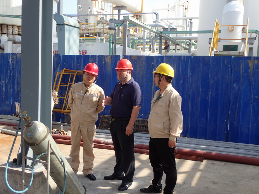 楊龍一行實地查看了氯堿公司氫氣純化技改項目、天然氣制氫壓縮機(jī)廠房現(xiàn)場和氨綸公司精制罐區(qū)、危廢庫等重點區(qū)域,就相關(guān)設(shè)備運行、安全防范情況進(jìn)行詳細(xì)了解。楊龍強調(diào),新中國成立70周年即將到來,要把安全工作當(dāng)成一項重要的政治任務(wù),認(rèn)真做好各個重點部位、關(guān)鍵裝置等環(huán)節(jié)的排查和治理,提高專業(yè)化水平,做到立行立改。要提高安全生產(chǎn)意識,認(rèn)真落實好安全檢查、節(jié)假日應(yīng)急管理和值班制度,強化對設(shè)備的檢查維護(hù)和隱患整改,確保節(jié)日期間安全生產(chǎn)平穩(wěn)運行。