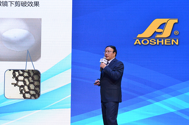 3月13日,“融-合”奧神氨綸新產(chǎn)品發(fā)布會(huì)在上海國家會(huì)展中心成功舉辦!中國工程院院士蔣士成、中國化學(xué)纖維工業(yè)協(xié)會(huì)副會(huì)長賀燕麗、趙向東等嘉賓蒞臨現(xiàn)場(chǎng),在國內(nèi)外的眾多客戶代表、觀眾共同見證下,氨綸公司低溫?zé)嵴澈习本]和石墨烯氨綸兩大新產(chǎn)品正式面市。為期3天的展會(huì)上,有將近500位訪客前來氨綸公司展位咨詢洽談,特別是吸引到來自美國、德國、土耳其、日本、巴基斯坦、伊朗等眾多國外客商的熱切關(guān)注。
