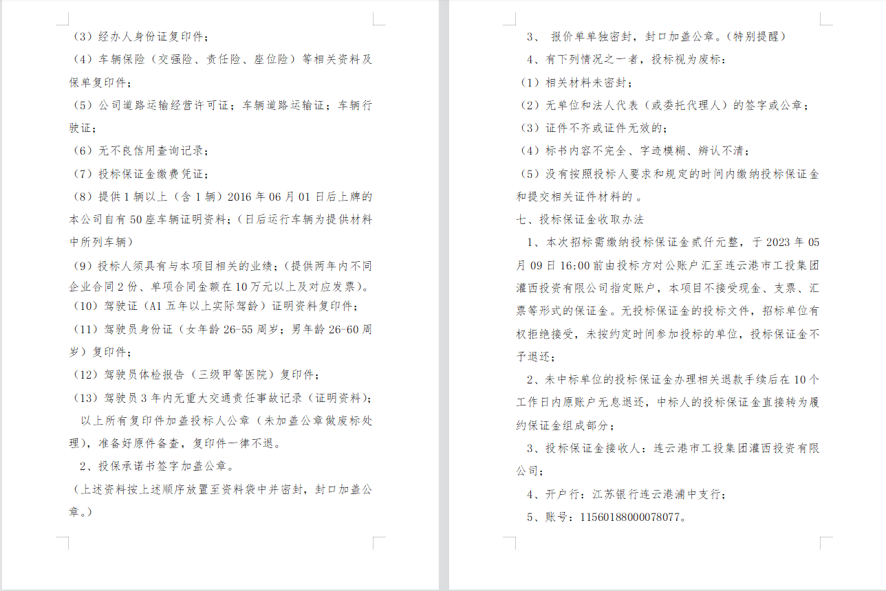 連云港市工投集團(tuán)灌西投資有限公司 員工上下班通勤車輛租賃項(xiàng)目二次招標(biāo)公告