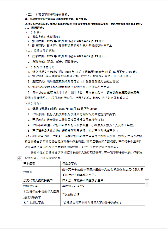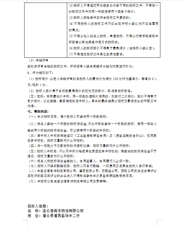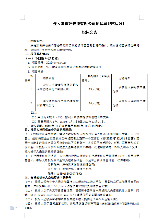 連云港宵洋物流有限公司原鹽異地轉運項目招標公告