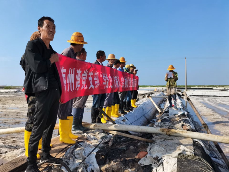 為進(jìn)一步深化黨史學(xué)習(xí)教育,加強(qiáng)黨員和領(lǐng)導(dǎo)干部的家風(fēng)建設(shè),9月16日下午,海州灣黨支部結(jié)合解放戰(zhàn)爭史的學(xué)習(xí),在大八組扒鹽現(xiàn)場開展“學(xué)黨史、傳家風(fēng)、銘初心”主題黨日活動,團(tuán)結(jié)引領(lǐng)廣大職工傳承紅色家風(fēng),賡續(xù)精神血脈,堅(jiān)定不移聽黨話、跟黨走,銘記黨史黨恩,弘揚(yáng)家國情懷。