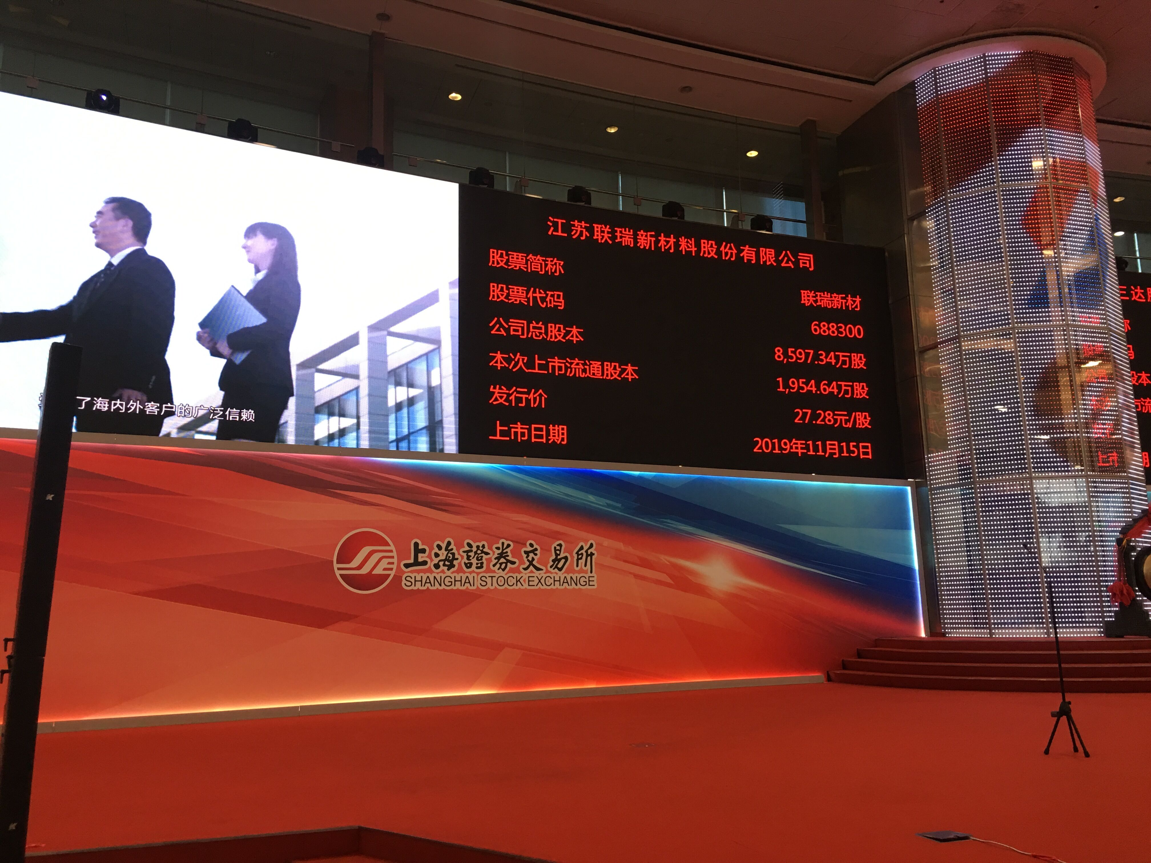 11月15日上午9時30分,工投集團產(chǎn)業(yè)基金投資企業(yè)——江蘇聯(lián)瑞新材料股份有限公司(以下簡稱“聯(lián)瑞新材料”)首次公開發(fā)行A股上市儀式于上海證券交易所舉行。集團公司黨委書記、董事長楊龍,資產(chǎn)管理公司有關人員受邀出席儀式。