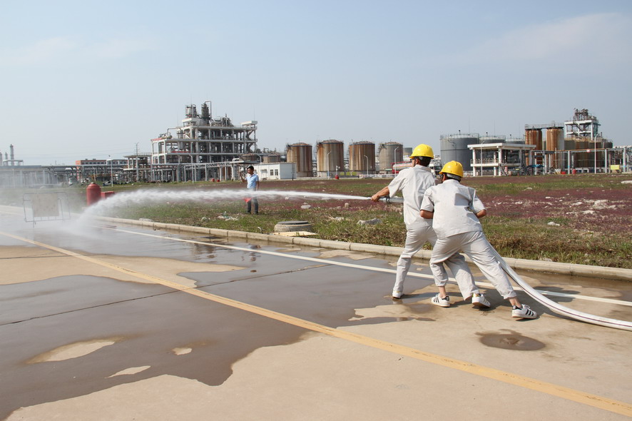 比武前,由消防教官對(duì)操作技巧、要領(lǐng)、安全注意事項(xiàng)進(jìn)行了說明,各參賽隊(duì)3人一組依次進(jìn)行比賽,發(fā)令后,接水袋、連水槍、開消火栓、沖向目標(biāo)、擊中火源點(diǎn),動(dòng)作連貫無差錯(cuò)的情況下比速度,最后黃化制鈣代表隊(duì)以15.07秒的優(yōu)異成績(jī)獲得一等獎(jiǎng),金橋制鹽代表隊(duì)、神特新材料代表隊(duì)獲得二等獎(jiǎng),供電公司代表隊(duì)、氨綸公司代表隊(duì)和臺(tái)北投資公司代表隊(duì)獲得三等獎(jiǎng)。