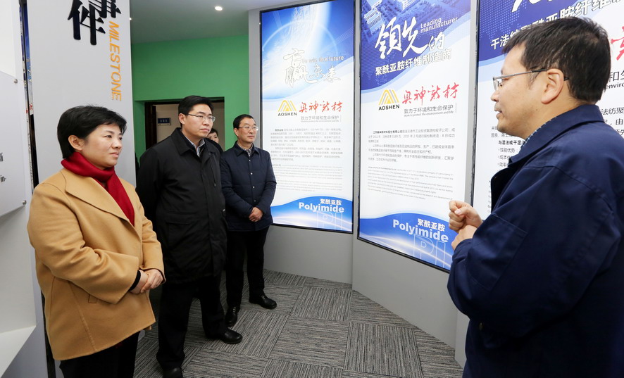 萬聞華一行先后參觀了奧神新材料公司展廳和生產(chǎn)車間,聽取了該公司目前的發(fā)展情況匯報,詳細了解高性能纖維產(chǎn)品的相關性能和發(fā)展前景,對該公司在纖維行業(yè)等方面取得的成績給予充分肯定。萬聞華希望奧神新材料公司要進一步突出“高、新、優(yōu)”特色,不斷推動產(chǎn)業(yè)高端化、規(guī)?;?、集聚化發(fā)展,為推動全市纖維新材料產(chǎn)業(yè)發(fā)展做出新的貢獻。