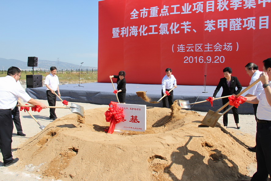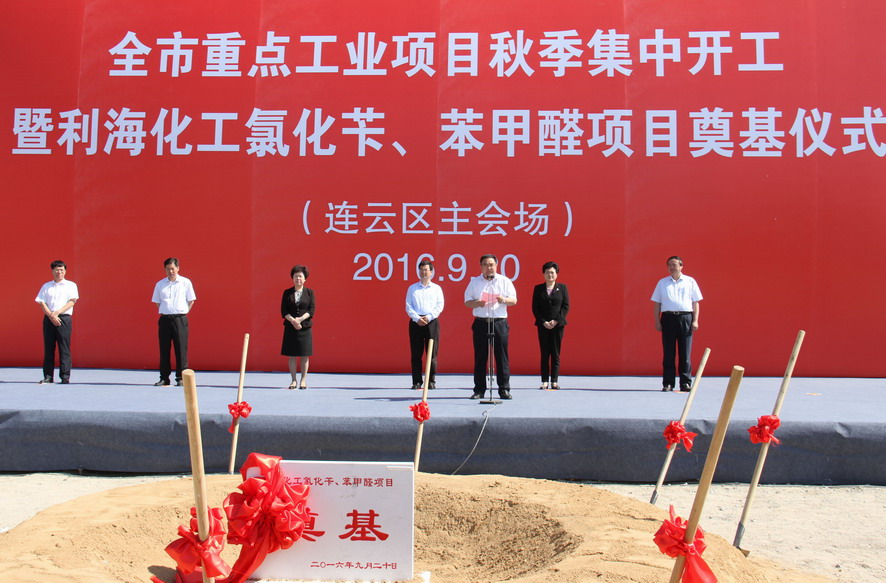 9月20日,我市重點(diǎn)工業(yè)項(xiàng)目秋季集中開工(連云區(qū)主會場)暨利?;ぢ然S、苯甲醛項(xiàng)目奠基儀式在利海公司舉行,市委書記、市人大常委會主任楊省世,市領(lǐng)導(dǎo)楊莉、董恕娟、徐家保、魯林,集團(tuán)公司董事長、黨委書記楊龍、總經(jīng)理胡建明等出席開工儀式。