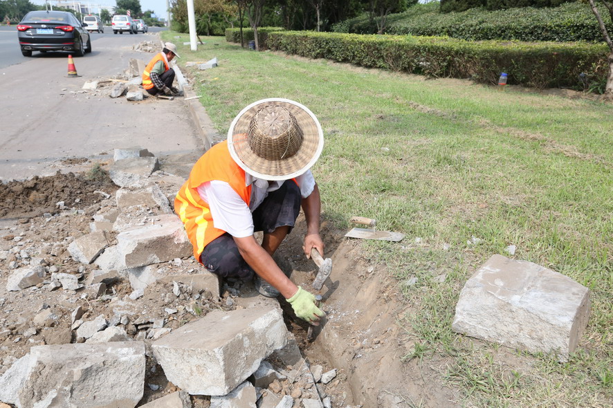 位于連云港東站附近的新光路,是開發(fā)區(qū)境內(nèi)的一條主要運輸?shù)缆?,?jīng)常有重型卡車經(jīng)過,每天川流不息的車輛不僅給道路增加了運載負荷,也使得道路兩旁的路牙石、人行道磚等受碾壓、撞擊、剮蹭等因素影響,破損非常嚴重。為了加快工程進度,降低人工成本,工程項目部在該路段采取機械施工的方式,很大程度上的提高了項目進度。在項目開展過程中,工程項目部的人員也遇到了許多的困難,新光路由于地處火車站附近,平常車流量大,在施工過程中要注意對來往車輛進行避讓;另外,由于該路段臨近新光小區(qū)、瀾庭觀邸等住宅區(qū),早晚上下班的居民也限制了施工時間短。雖然面臨種種困難,盛達市政公司的施工人員沒有埋怨,而是想方設(shè)法去克服。自8月24日開工以來,截止目前,總長近6000米路段內(nèi)的路牙石以及人行道磚的清理工作已經(jīng)全部完成,下階段,工程項目部還將安排人員進行新路牙石與人行道磚的更換工作,并將開展附近其他道路的修復(fù)工作,確保將“創(chuàng)衛(wèi)”工作的開展落實到實處。