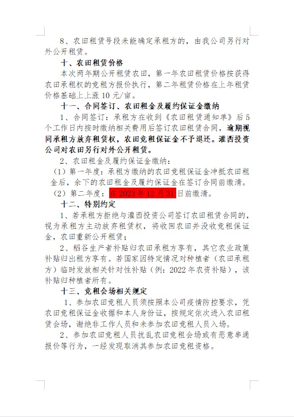 2023年灌西投資公司農(nóng)田公開競租公告
