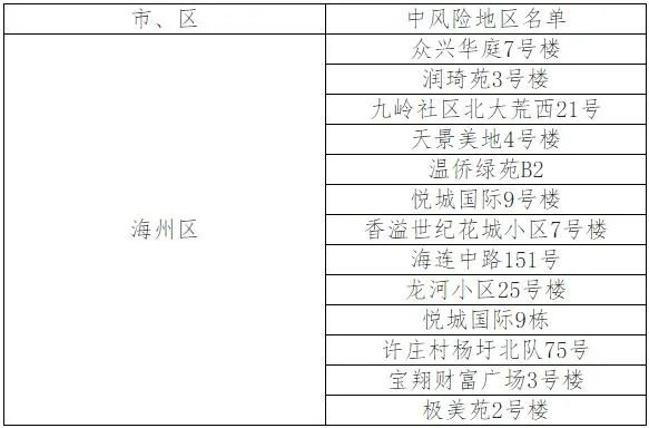 根據(jù)國務(wù)院聯(lián)防聯(lián)控機(jī)制有關(guān)規(guī)定,經(jīng)綜合評估研判,市指揮部決定,自發(fā)布之日起,將龍河小區(qū)25號樓、悅城國際9棟、許莊村楊圩北隊75號、寶翔財富廣場3號樓、極美苑2號樓調(diào)整為中風(fēng)險地區(qū)。