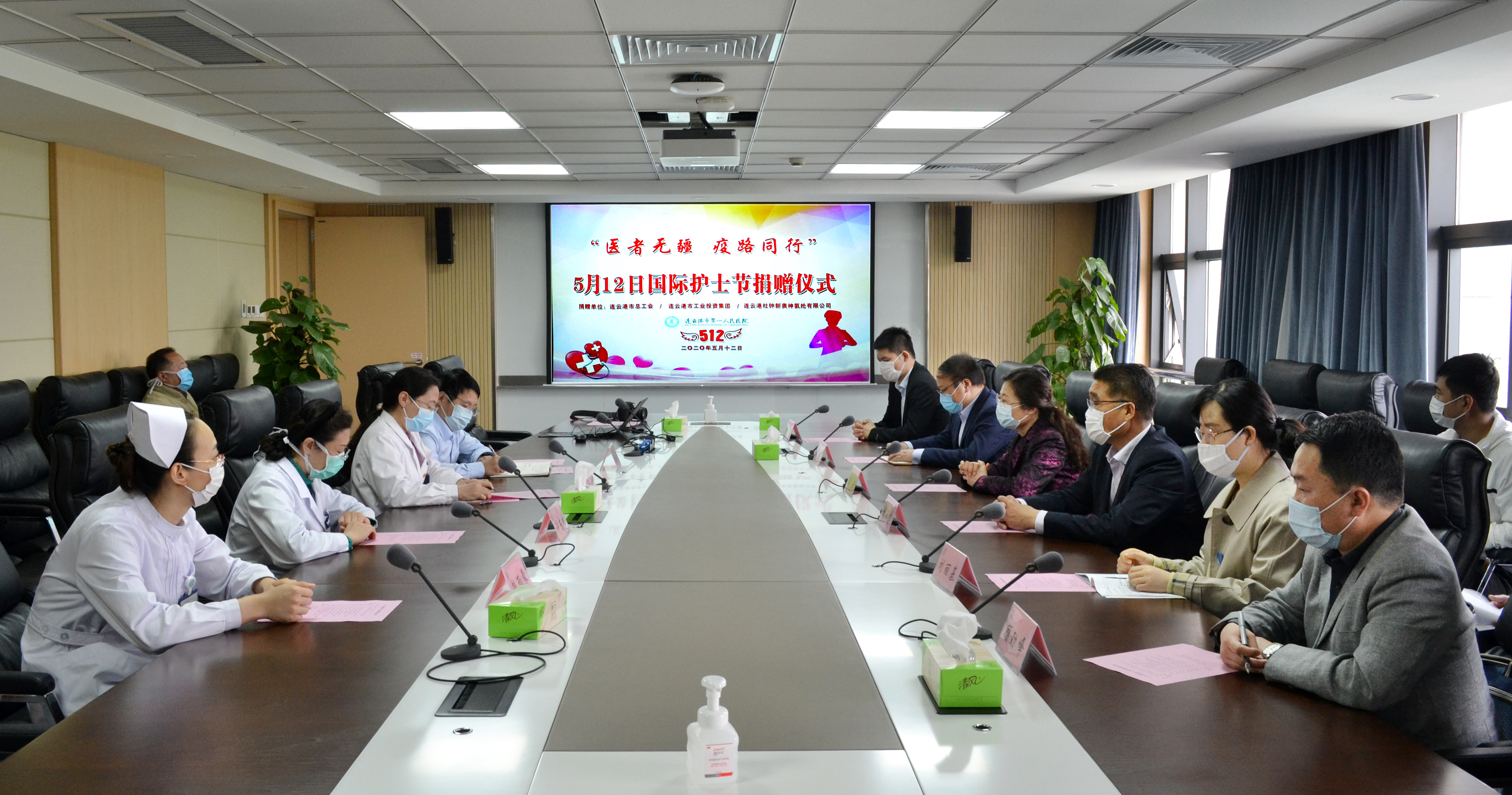 5月12日國際護士節(jié),連云港杜鐘氨綸有限公司來到連云港市第一人民醫(yī)院開展愛心捐贈活動,共計捐贈功能性絲襪15000雙。市總工會副主席秦云、集團工會主席劉承志、市一醫(yī)工會主席胡蓉,副院長李明星,氨綸公司總經理張斌出席捐贈儀式。