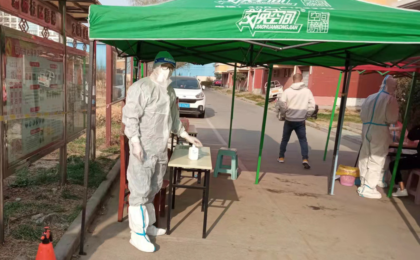 請打開“健康碼”,“姓名?居住幾號樓?這是第幾次參加核酸檢測……”3月10日,我市開啟第五次大規(guī)模核酸檢測工作。早上7點整,老黨員劉建舟來到海州區(qū)新月園小區(qū),開始核酸檢測點的信息登記工作。劉建舟今年58歲,是徐圩公司31年黨齡的老黨員,面對突發(fā)的疫情,他第一時間來到社區(qū),主動請求加入核酸檢測采樣點的志愿者隊伍。每天他認真做好小區(qū)1500余人信息登記、檢測場所消殺等工作,從早上一直工作到晚上8點,一天下來,腰酸背痛的他從凳子上一下子都起不來,當筆者問到是什么讓他毅然堅持到一線參加志愿者服務(wù),劉建舟堅定地說:“因為我是一名黨員,在非常時期,我必須走在前頭,起帶頭作用?!?/span>