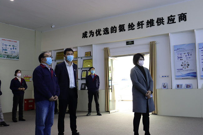 達(dá)晴一行人先后參觀了公司展廳、黨員活動室、八期生產(chǎn)線、自動化包裝線等。參觀過程中,講解員對氨綸公司的發(fā)展歷程,差別化產(chǎn)品、戰(zhàn)略優(yōu)勢、等進(jìn)行了詳細(xì)介紹。達(dá)晴副行長對氨綸公司低溫?zé)嵴澈习本]、抗菌氨綸、驅(qū)蚊氨綸及氨綸生產(chǎn)全流程自動化、智能化生產(chǎn)線等給予了高度評價。希望氨綸公司進(jìn)一步深入實施差別化氨綸及后道特色產(chǎn)品發(fā)展戰(zhàn)略的重大舉措,乘風(fēng)破浪,再創(chuàng)行業(yè)輝煌。