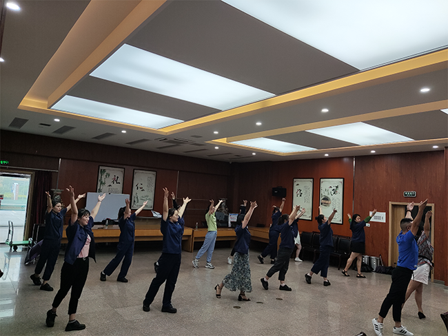 此次活動(dòng)是公司近幾年來,組織、抽調(diào)人數(shù)最多的一次文藝活動(dòng),公司工會(huì)組織專人負(fù)責(zé),與基層各部門協(xié)商抽調(diào)15名職工組成舞蹈隊(duì)。隊(duì)員們?yōu)榱斯ぷ髋啪殐刹徽`,利用休息時(shí)間加班加點(diǎn)完成本職工作。許多職工以前從未接觸過舞蹈,四肢較僵硬,不協(xié)調(diào),在困難面前,沒有人選擇退縮,而是以破釜沉舟的精神苦練,休息時(shí)間去請(qǐng)教跳的較好的同事學(xué)習(xí)動(dòng)作,一遍又一遍直到學(xué)會(huì)動(dòng)作。排練過程中大家齊心協(xié)力,共同努力,相互打氣,不喊苦,不喊累。大家表示會(huì)全力以赴參加排練,爭取取得圓滿的成績,展現(xiàn)出公司職工健康向上的激情與活力,體現(xiàn)出公司職工團(tuán)隊(duì)協(xié)作的精神。