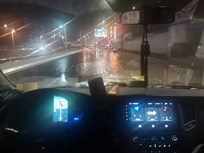 一路上,心急如焚,希望貨車能夠快點,再快點。路上不時遇到同樣掛著橫幅,滿載救援物資的車輛,他們來自祖國各地,大家很有默契的鳴笛互相致敬。剛剛還在享受著作為施救者的“小驕傲”,感受著來往車輛對我們的注目,但在我們到達鄭州的那一刻,親眼看到這個滿目瘡痍的城市時,我被震撼到了。雖然之前在網(wǎng)上了解到鄭州的受災(zāi)情況,但真的沒想到印象中昔日繁華的街道成為現(xiàn)在的樣子,看到滿街報廢的車輛、無家可歸的人群、泥濘的道路……一份疼痛感油然而生。