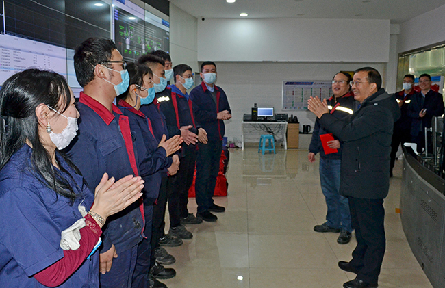 “過年了,你們還堅(jiān)守在第一線,大家辛苦了。”2月12日,大年初一一早,陽光明媚,集團(tuán)公司總經(jīng)理胡建明一行在公司總經(jīng)理張斌的陪同下來我公司,對(duì)春節(jié)期間堅(jiān)守一線的員工們送上新年祝福和慰問品。