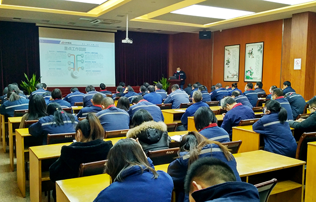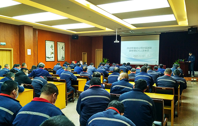 1月12日上午,氨綸公司2020年度中層管理人員述職暨管理技術(shù)人員考評會議在一樓多功能廳舉行。公司管理及技術(shù)人員100余人參加了會議。