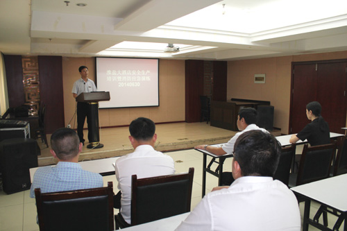 安全宣教一著不讓。該酒店組織全體員工觀看安全事故教育警示片,宣傳安全生產(chǎn)知識,提高員工安全生產(chǎn)意識,營造“安全生產(chǎn)月”濃厚氛圍。活動期間,共召開安全會議2次,下發(fā)文件2份,集中安全培訓(xùn)2次,開展消防應(yīng)急演練1次。